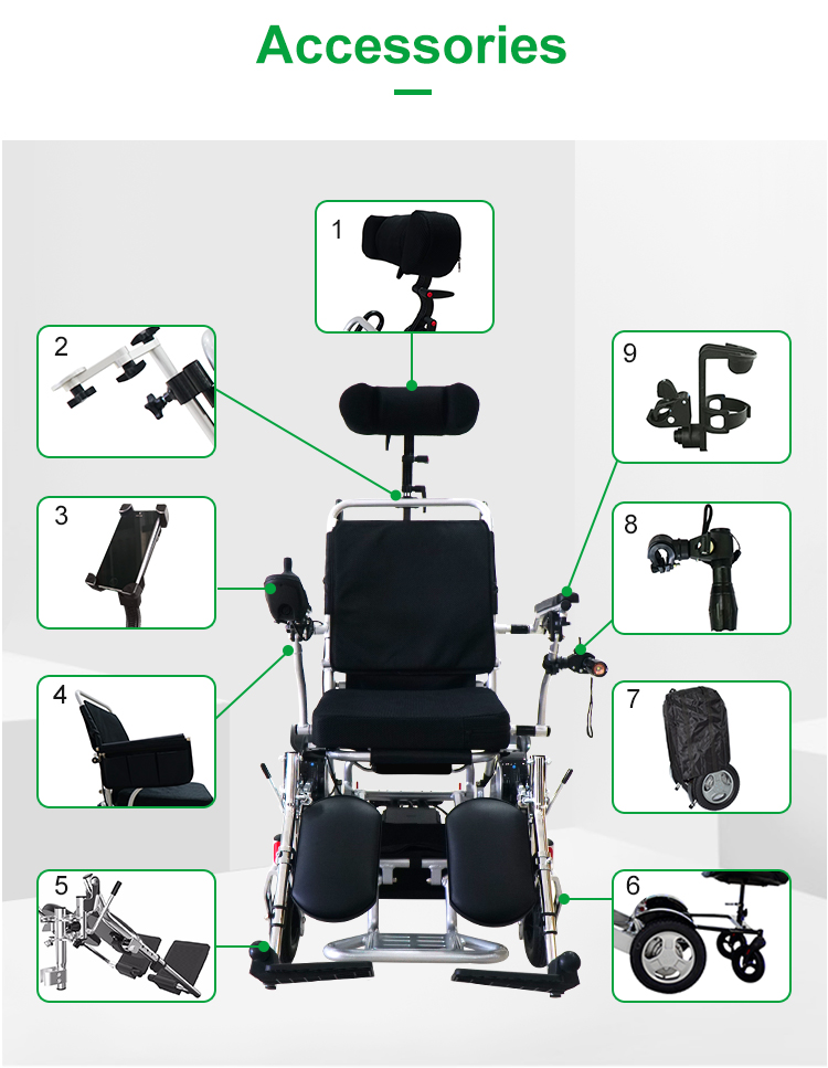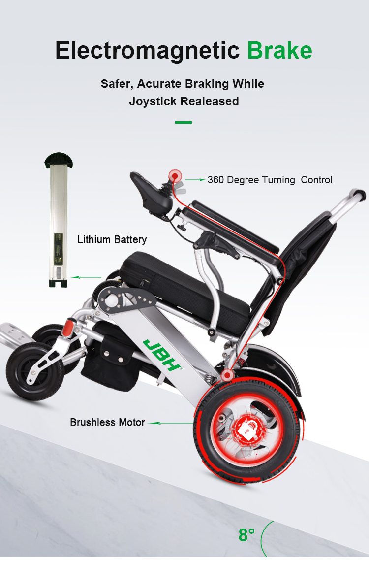 1. La sedia a rotelle elettrica può piegare o svolgersi in un secondo, facile da trasportare come bagagli in aereo o in treno.